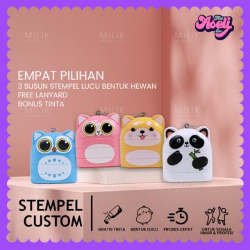 ✨ Cari: “Stempel Custom 3 Susun Lucu – Gagang Karakter + Tinta + Lanyard”