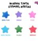 Warna tinta kertas: Hitam, ungu, biru, pink, merah dan hijau